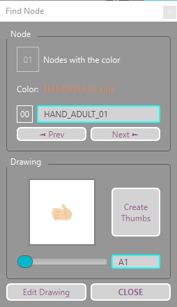 ThumbnailMostra um thumbnail dos drawings do banco de drawing do node selecionado;SliderEscolhe o drawing do banco para procurar;FindRoda a ferramenta com o drawing do banco selecionado;